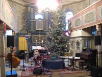 "Sind die Lichter angezündet" war das Thema des Konzertes. Auf der "Bühne" standen Sylvia Weisheit-Heinze als Sängerin, Wieland Götze am Schlagzeug, Uwe Rapp am Kontrabass und Steffen Heinze am Piano.