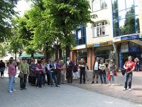 Die zweite Etappe an unserem fünften Reisetag im Norden Polens brachte uns, nachdem wir Gdynia hinter uns gelassen hatten, nach Sopot. Dort stiegen wir in Zentrumsnähe an der Hauptstraße aus dem Bus. Strahlender Sonnenschein begrüßte uns und unser Stadtführer, Jan Klatt, begleitete uns in die Fußgängerzone der Stadt, die Monte-Cassino-Strasse. Schön anzusehende Häuserfassaden erstreckten sich von hier aneinandergereiht bis hinunter zum Meer.