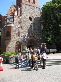 Selbstverständlich mussten einige von uns auch kurz einen Blick ins Innere der Kirche werfen. Anschließend trafen alle wieder vor der Kirche im Sonnenschein zusammen und der Weg hinunter zum Meer konnte fortgesetzt werden. Zahlreiche Menschen waren an diesem Tag unterwegs, denn in Polen war ja der Fronleichnam-Feiertag ein wirklicher Feiertag. Die Gottesdienste waren mittlerweile beendet und somit die Kirchen wieder leer. Die Menschen gingen im Sonnenschein spazieren und vergnügten sich an diesem freien Tag.