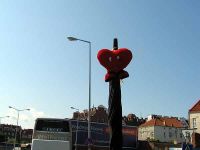 Dabei war es nicht mehr weit in das historische Stadtzentrum von Danzig. Wir gingen etwa 400 Meter, hatten von dort schon eine herrliche Sicht über den Kanalarm hin zum berühmten Krantor. Herr Klatt lief voran und schwenkte dabei ein an einem Regenschirm festgebundenes Plüsch-Herz als Erkennungszeichen in der Luft. Es war wirklich nicht weit bis zu einem Tor, welches uns in das Zentrum führte. Hier wurde uns schlagartig wieder bewusst, dass heute ein Feiertag begangen wurde (Fronleichnam) und dass viele Leute an diesem arbeitsfreien Tag unterwegs waren, ganz abgesehen von Touristen, wie wir, die sich die Stadt ansehen wollten.