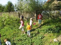Zwischen Bürgermeisterin und den Kindern gab es die Absprache, dass zuerst alles gesammelt werden würde, um es dann gerecht zu verteilen. Außerdem sollten sich alle an die Osternester anschleichen. Daraus wurde jedoch nichts, denn schon nach wenigen Schleich-Schritten, wurden diese größer und man ging ins Rennen über. Innerhalb weniger Minuten war der ganze Hof abgesucht und alles gefunden, was es zu finden gab.