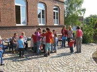 Wenige Minuten vor 10.00 Uhr hatte sich vor dem Bürgerhaus eine 16köpfige Kinderschar eingefunden, um auf die Suche im Hof zu gehen. Manche waren in Begleitung ihrer Eltern gekommen, auf die eine mobile Kaffeetheke wartete. Aber auch für die Knirpse war dort gesorgt, denn selbstverständlich standen auch Säfte bereit.