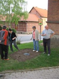 Nach einer ''Beratungspause" wurde das neue Vorgehen beschlossen und am nächsten Morgen umgesetzt. Dabei wurden die Verstärkungen vom Stamm entfernt und umgekehrte starke Keile in die Hülse gelegt.