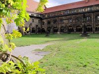 Wenige Schritte waren es von diesem Stadtplan bis zu zwei steinernen Säulen. Sie sollen die einzigen Überbleibsel des einstigen Kaiserpalastes von Otto I. sein, wie uns der Stadtführer sagte. Wie sich durch archäologische Grabungen zeigte, befand sich der Palast einst an der Westseite des heutigen Platzes.