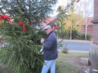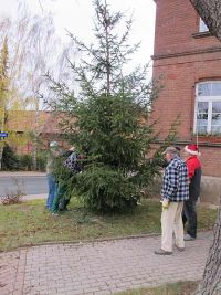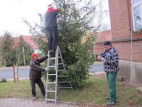 Am Weihnachtsbaum wurden noch kleine Arbeiten erledigt, wie der Stromanschluss, damit der Baum am Abend auch im Lichterglanz von jedem, der an ihm vorüber kam wahrgenommen wurde.