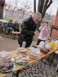 Nachdem die Knirpse und Erwachsenen den musikalischen Teil abgeschlossen hatten, gab es noch einen kurzen offiziellen Teil, bei welchem Karola Stang (MdL) einen Scheck mit Fördergeldern an den Vorsitzenden des Heimatvereins, Jens Schüßler, übergab, um damit Projekte zu unterstützen, die der Verein im Heimat- und Waidmuseum verwirklichen wollte. Die Mittel stammten vom Verein "Alternative 54 Erfurt e.V."