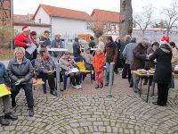 Nur wenig später setzte die Dämmerung ein und das Ergebnis des Nachmittags leuchtete für die Hochstedter, die sich am Bürgerhaus mit Glühwein aufwärmten.