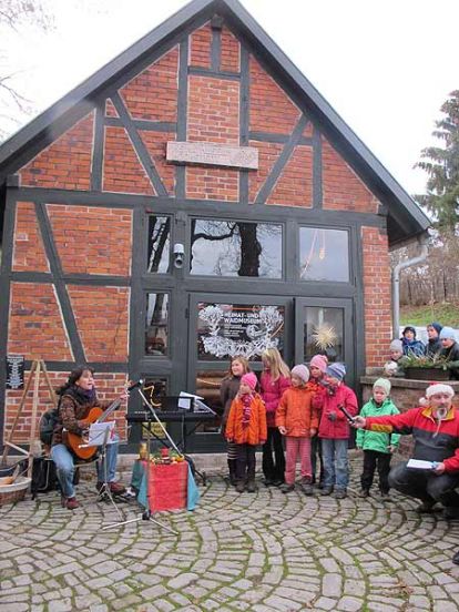Kurze Zeit später begann das Programm mit Musik zur Adventszeit, in die auch die Erwachsenen gern einstimmten. Diesmal waren sogar Liedertexte verteilt worden, um die erwachsenen Sänger vor vergessenen Textpassagen zu schützen.