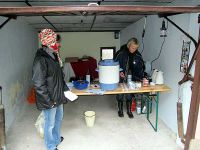 Noch vor der vereinbarten Zeit - 13.00 Uhr - trafen die Musiker ein. Dann galt es, die Instrumente und Hilfsmittel für das Konzert, wie Lautsprecher usw. die Kirchentreppen hinauf zu wuchten, was eine ganz schöne Schlepperei bedeutete. Als schließlich alles im Kircheninneren abgestellt war, wartete der Glühweintopf mit einer Stärkung auf uns.