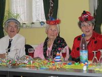 Der Faschingsfrauentreff fand am 21. Februar statt. Das war gleichzeitig der Faschingsdienstag 2012 und damit der günstigste Termin für diesen Treff überhaupt. Die Frauen hatten sich wie immer um 15.00 Uhr getroffen und den Raum zuvor bunt hergerichtet.