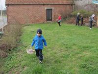 Schokoladenmaikäfer krabbelten dort auf Bäumen und Sträuchern, bunte Eier lagen unter Grasbüscheln und größeren Blättern und Schokoladenhasen hoppelten überall. Während die Kinder suchten, genehmigten sich die Eltern und Großeltern einen heißen Kaffee.