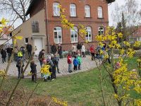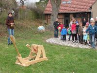 Diese Schleuder machte den Knirpsen so viel Spaß, dass die Schlange, um auch mal an den Ball zu kommen, gar nicht enden wollte. Schließlich war jedoch die letzte Tüte verschossen und der Vormittag der Ostereiersuche 2012 fand sein Ende.