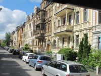 Frau Ott einigte sich mit dem Busfahrer auf eine kurze Fahrt durch das interessante Gründerzeitviertel, welches zu Fuß nur mit einigem Zeitaufwand zu erreichen war. Wir durchquerten Straßenzüge mit reich verzierten Häusern auf beiden Seiten. Görlitz hatte im 19. Jahrhundert von der Industrialisierung und der günstigen Verkehrslage profitiert. Es entstand damals eine Stadt mit breiten Prachtstraßen und vielen monumentalen Gebäuden. Hier reihten sich Häuser mit dekorativen Ornamenten aneinander und überboten sich mit reichem Schmuck, mit Balkonen und in ihrer Farbigkeit.