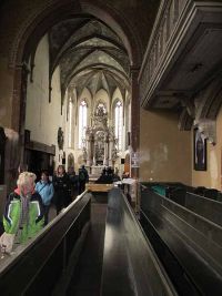 Auch die Dreifaltigkeitskirche – eine ehemalige Klosterkirche der Franziskaner – beeindruckte nicht nur durch ihre ungewöhnliche Bauweise, sondern auch mit dem Altar der „Goldenen Maria“.