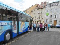 Aber zunächst mehr zum Reiseverlauf: Wir trafen uns frühzeitig, nämlich schon um 6.00 Uhr, denn die Fahrt würde etwas länger dauern. Es war geplant, gegen 10.00 Uhr in Görlitz einzutreffen. Dort würde uns eben jene Stadtführerin erwarten, Frau Ott, die unsere Waidballen im Vorjahr erhalten hatte. Pünktlich zur vereinbarten Zeit rollte der Bus von Becker-Reisen in Hochstedt an Bushaltestelle heran und wir stiegen ein. Insgesamt hatten sich sechsundzwanzig reisefibrige Hochstedter, Vieselbacher und Erfurter angemeldet, um mit nach Görlitz zu fahren. Es ging über die A7 immer in östliche Richtung. Dabei konnten wir noch von Glück reden, dass es nicht wie am Vortag regnete; hier und da zeigte sich sogar blauer Himmel. Aber wir hatten diesbezüglich bis jetzt ja immer ein bisschen Glück gehabt. (klopf auf Holz)