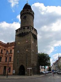 Vor uns ragte der Reichenbacher Turm auf, der ebenfalls zur Stadtbefestigung gehörte und für uns den Beginn der Stadtführung bedeutete. An seiner Fassade sind Wappen angebracht, die für Görlitz geschichtlich bedeutsam waren. Durch einen Torbogen im Turm erreichten wir den dahinter liegenden Obermarkt, den wir zuvor mit dem Bus zum Teil umrundet hatten, mit seinen schmucken Häuserfassaden. Er war Bestandteil der Via Regia und seine Ausdehnung zeugt von der Bedeutung dieses einstigen Handelsplatzes.Von hier gelangten wir nach wenigen Schritten zum Frauenturm, einem mächtigen runden Gebäude mit fünf Meter dicken Grundmauern.