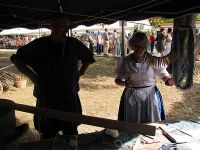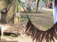 Am 18. August 2012 machten wir uns wieder einmal auf den Weg nach Rohrborn. Dort galt es das 7. Waidmühlenfest zu feiern. Diesmal waren wir allerdings nicht nur als Gäste dort sondern auch, um mit frisch gestochenem Waid zu färben. Mit im Gepäck hatten wir aber auch noch andere Sachen, die wir zeigen und vorstellen wollten. Um alles ansprechend anordnen und präsentieren zu können, hatten wir uns (eigentlich für unser Waidfest eine Woche später) einen Pavillon zugelegt und noch einige Deko-Artikel, wie Jute in blau und braun.