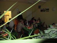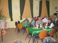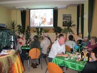 Da wir im Rahmen einer Fahrt Anfang Mai diesen Jahres (also 2012) an der sechzehn Hochstedter teilgenommen hatten, für sieben Tage in Norditalien und Frankreich unterwegs waren, um uns an der Blumenriviera umzusehen, kamen wir nicht drumherum, extra einen Abend zum Ansehen der Bilder der Reise auszurichten. Schon im letzten Jahr hatten wir einen Themenabend mit dem Titel "Walzer und Wein" ausgerichtet und im Frühjahr einen, den wir "Waterloo und Wein" genannt hatten. Diesmal sollte es neben den Bildern, um Italienischen Wein gehen. Das Bürgerhaus verwandelten wir am 17. November 2012 innerhalb weniger Minuten - es waren etwas mehr als dreißig - in eine mediterrane Landschaft. Tischdecken und Deko sorgten für Gemütlichkeit an den Plätzen für die Gäste. Der Bildwerfer war auch schnell aufgestellt und es hatten sich insgesamt über zwanzig interessierte Hochstedter angemeldet, die sich entweder die Reise in Erinnerung rufen wollten oder sehen wollten, was wir gesehen hatten.