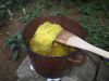 Es gab die Idee das Farbspektrum von gefärbter Wolle im Museum etwas zu erweitern. Wir hatten bisher von Schaf-Natur über Beige und Rosa, einige Lindgrüne Töne und natürlich mit Waid Blaugraue Töne erzielt in den unterschiedlichsten Abstufungen. Als einfache Farbe war eigentlich ein Gelbton zu erreichen. Dafür wollten wir mit Birkenblättern einen Versuch starten. Gefärbt werden sollte während der...