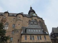 Diese Zeit stand uns aber nicht zur Verfügung. Wir sahen uns daher das Schloss nur von außen an und genossen die Aussicht auf das Tal der Lahn und Marburg. Hier endete unsere Führung und die Stadtführerin verabschiedete sich von uns. Einige der Reisegruppe hatten sich wegen des Anstiegs schon vorher aus der Führung verabschiedet und entdeckten die Stadt auf eigene Faust. Diejenigen, die bis zum Schloss mitgekommen waren machten sich jetzt an den Abstieg, um etwas zu essen oder die Stadt weiter zu besichtigen. Wir hatten uns für 15.00 Uhr wieder am Bus verabredet und damit konnte jeder fast drei Stunden nutzen für den individuellen Stadtbummel.