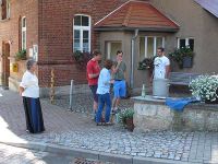 Am geplanten Drehtag kamen die MDR-Leute und packten zunächst ihre Gerätschaften aus. Dann ging es aber auch schon los, denn das Sonnenlicht in seinem Lauf kam immer mehr auf die Podeste vor dem Museum zu und das gefiel dem Kameramann überhaupt nicht.