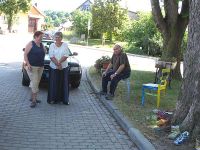 | Ankunft des MDR und unsere Färbeecke vor dem Museum | |