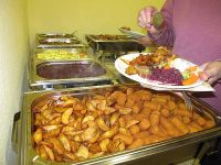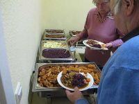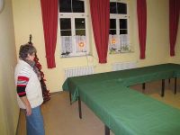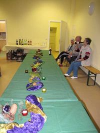 Unsere Weihnachtsfeier fand am Nikolaus-Tag statt, also am 6. Dezember 2013. Wie immer feierten wir im Bürgerhaus, das wir deshalb schon einen Tag vorher weihnachtlich geschmückt hatten. Da sich diesmal mehr Teilnehmer angemeldet hatten als in den Vorjahren, mussten wir die Tische so stellen, dass alle daran Platz fanden, in U-Form und nicht wie bisher im Quadrat.