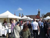 Von hier war es nicht mehr weit zur Brücke über den Main, auf der an diesem Tag unzählige Marktbuden aufgestellt waren. Die Händler boten allerlei Kunstvolles und Handgemachtes an und die Touristen schoben sich gegenseitig über den Fluss. Hier verabschiedeten wir uns von Frau Volmer, denn ihre interessante Führung endete am Ufer des Mains.