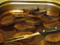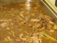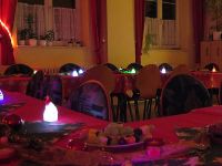 Aus dem Vorraum des Bürgerhauses zogen schon die herrlichsten Düfte nach Gebratenem zu uns herein, so dass es alle an das dort aufgebaute Buffet zog. Neben Geschnetzeltem gab es Rinderbraten aber auch - typisch weihnachtlich - eine Entenpfanne. Dazu Kartoffelspalten und verschiedenes Gemüse und Salate.