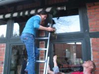 Der Maibaum 2015 sollte ja wie in jedem Jahr am 30. April aufgestellt werden. Vom Juni bis Ende April fristet er immer sein Dasein unter dem Dachkasten des Museums auf der Seite zum Bürgerhaushof hin, wo er auf dort angebrachten Haken Platz findet. Beim Museumsputz, Mitte April, war nun aufgefallen, dass ein Vogel aufgeschreckt vom Maibaum aus davon flatterte. Einige Tage darauf wurde während der 131. Vereinssitzung am 21. April die Situation überprüft und im Ergebnis ein Amselnest auf dem querliegenden Maibaum vorgefunden. Die Amselfrau brütete bereits und verfolgte gespannt, vermutlich irritiert und angstvoll, was die Menschen unter ihrem Nest trieben. Das Maß für die Amselfrau war voll, als diese Menschen eine Leiter an die Wand unter ihrem Nest anlehnten und eine Menschenfrau dann auch noch auf der Leiter nach oben stieg. Sie flog aufgeregt davon und beobachtete aus sicherer Entfernung, was die Menschen nun machten.