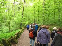 An der Neptungrotte verließen wir die Hauptachse und folgten einen Waldweg bis zu einer künstlich angelegten Felswand. Dabei handelte es sich um den sogenannten Steinhöfer Wasserfall. Auch dort hatten sich schon zahlreiche Zuschauer in Position gebracht, die auf sprudelndes Wasser warteten. Wenig später war die Felswand eingehüllt in wild fließendes Wasser, dass seinen Weg in ein Bachbett suchte und fand.