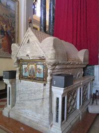 | Im Inneren der Basilika | Sarkophag der Hl. Euphemia |