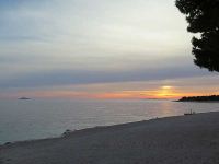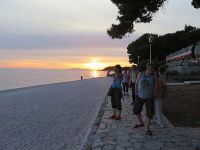 Im Anschluss schlenderten wir zum Strand hinunter und tauchten unsere Füße erstmals in die Adria, die recht kühl wirkte. Wir gingen weiter auf die Altstadt zu und beobachteten von unserem Strandweg aus den Sonnenuntergang. Kurz vor dem Tor zur Altstadt machten wir es uns in einer der Gaststätten gemütlich und ließen uns roten und weißen Wein schmecken. Nebenbei lief ein Fußballspiel mit Beteiligung des FC Bayern München, das die eine Hälfte unserer Truppe auf der Terrasse verfolgte. Wir anderen saßen am Strand und erzählten von heute, von gestern und von sonst was. Gegen 22.30 Uhr waren wir im Hotel zurück und jeder bereite sich in Form von Schlaf auf den morgigen Tag vor.