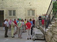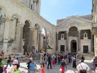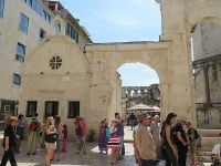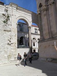 Auf der Einfahrtstraße in Richtung Innenstadt gab es viele Ampeln und das Fahrzeugaufkommen war sehr hoch - immerhin ist Split die zweitgrößte Stadt Kroatens mit fast 170 000 Einwohnern. Trotzdem kamen wir sehr verfrüht am Treffpunkt mit der Stadtführerin an - es sollte wieder Beti sein, die uns am Vortag schon Trogir gezeigt hatte. Wir stiegen in unmittelbarer Nähe des Diokletianspalastes aus. Der Bus hatte dort seinen Parkplatz gefunden. Mit der Gästeführerin war verabredet worden, dass sie mit der Führung um 10.00 Uhr beginnen sollte. Damit konnten wir uns noch etwas mehr als eine halbe Stunde selbst umsehen.