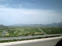 Gegen 10.00 Uhr verließen wir die Küstenstraße und damit die Adria. Mit einem Hupen grüßten wir im Vorbeifahren kurz darauf die Orangenschalen- und Mandarinenhändler. Unter uns erstreckte sich die Ebene mit den Orangen- und Mandarinenplantagen. Als wir die Ebene erreicht hatten, folgten wir ein Stück dem Lauf des Neretva. Kurze Zeit darauf, bei Rogotin, begann sich unser Bus ins Gebirge hinauf zu schrauben. Neben uns befand sich wieder das Gebiet um die acht Seen - von hier waren es noch 526 Kilometer bis Zagreb. Es ging durch einen kurzen Tunnel und in das Hinterland hinein. Bei Ploče gelangten wir auf die Autobahn, die wir kurz darauf erreicht hatten. Um 11.15 Uhr war Zagreb noch immer fast 400 km entfernt und bis Split waren es 26 km. Der Himmel hatte sich mit einem eintönigen Grau überzogen, trotzdem waren es draußen noch 24 °C. Rechts und links der Autobahn wechselten sich Berge mit Tälern ab, die größtenteils nur spärlich besiedelt waren. Um 12.00 hatten wir die Abfahrt Primosten erreicht, inzwischen hatte es sogar angefangen zu regnen. Wir hatten mit unserer Reise wirklich Wetterglück gehabt.