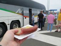 Kurz darauf standen wir an der Grenze,wie noch weitere fünf Busse vor uns. Anscheinend wurde heute kontrolliert. Wir durften jedoch an drei Bussen vorbei fahren und hatten nach sieben Minuten die erste Grenze hinter uns gelassen. Angelika kündigte in Kürze eine kleine Pause in Neum an. Wir hielten wieder an der Raststätte, an der wir auf der Hinfahrt schon Halt gemacht hatten. Diejenigen, die vor zwei Tagen keinen Lavendeltee gekauft hatten, deckten sich nun damit ein.