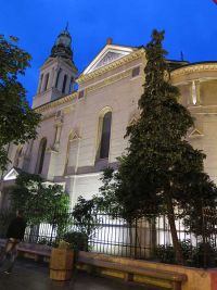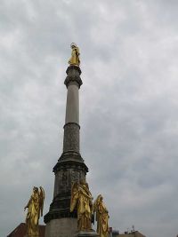 Leider war es nicht möglich, den Innenraum der Kathedrale zu besichtigen, da dort gerade die heilige Messe zelebriert wurde. Draußen, vor dem Portal erhebt sich inmitten eines Brunnens eine Säule mit einer goldenen Madonnenskulptur, daher die Bezeichnung Madonnenbrunnen. Am Fuß der Säule sind vier Engelsfiguren zu sehen.