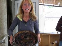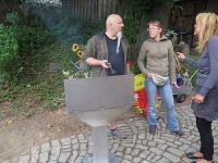 Anschließend setzten wir uns noch gemütlich zusammen, aßen Bratwurst vom Rost und Waidkuchen, der in der großen Steingutform aus dem Museum gebacken worden war. Der Kuchen hatte selbstverständlich Blau-Bestandteile.