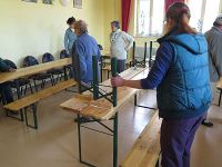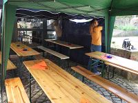 Immer wenn sich der April seinem Ende entgegen neigt, wird es bei uns Zeit den Maibaum aufzustellen, um das Frühjahr und den schönen Mai gebührend zu empfangen. Dazu gehört selbstverständlich nicht nur der Maibaum selbst, sondern auch Zelte oder Tische und Bänke, damit es die Hochstedter gemütlich haben. In diesem Jahr begann die unmittelbare Vorbereitung am 28. April. Da das Wetter immer ein Unsicherheitsfaktor ist, stellten wir mal lieber im Bürgerhaus Bänke und Tische auf.