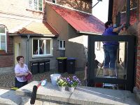 Damit waren die Vorbereitungen für die Museumsnacht aber noch nicht abgeschlossen. Ein Banner sollte in der Vorwoche auf das Ereignis hinweisen, außerdem wurden die Blumenkörbe vor dem Museum bepflanzt.