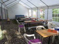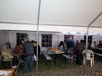 Am Tag vor der Museumsnacht wurden dann noch die Zelte aufgestellt und im Bürgerhaus der Vortrag zum Thema vorbereitet. Dazu wurden Stühle gestellt und die Technik aufgebaut.