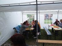 Die Vorbereitungen gingen am Tag selbst weiter. Die Zelte wurden eingeräumt und die Deko angebracht.Auch der Rost musste angefeuert werden, damit pünktlich um 19.00 Uhr der Vortrag beginnen konnte.