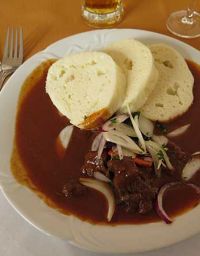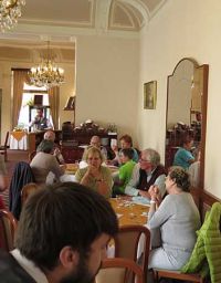Verschiedene Gerichte hatten zur Auswahl gestanden. Nachdem wir uns pünktlich an den runden Tischen niedergelassen hatten bestellten sich die meisten Mitgereisten ein Gericht mit Böhmischen Knödeln. Nach dem vorzüglichen Essen ging es weiter im Programm, in welchem Freizeit bis 15.30 Uhr stand. Jeder konnte sich in Marienbad nach Herzenslust umsehen.