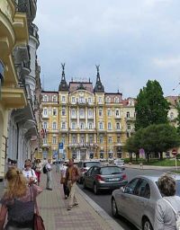Wenig später standen wir am Goetepatz. Im Hintergrund stand das Hotel, in welchem Goethe in den Jahren 1821 bis 1822 seine Kuraufenthalte verbrachte. Goethe war drei Mal in Marienbad, Ein Aufenthalt verbrachte er in einem Gebäude neben dem Hotel “Weimar“, in der ehemaligen Pension, die heute das Goethemuseum beherbergt. Das Hotel Weimar selbst bot einen traurigen Anblick. Der Putz bröckelte von der Fassade und die Fenster waren verdreckt. Die heutigen Besitzer sind nicht so richtig zu ermitteln, da sie ständig wechselten. Das Hotel soll bis 2020 jedoch wieder zum größten Hotelkomplex Europas zählen, welchen die Kurhotels hier nämlich darstellen. Über einen Kilometer ziehen sich Gänge dahin, die ein Hotel mit dem anderen verbinden. Das bronzene Goethedenkmal vor dem Hotel weist auf die Besuche des Dichterfürsten in der Stadt hin.