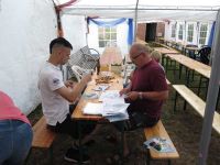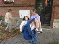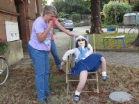 Ein Tag Pause für die Vorbereitung war am Mittwoch vorgesehen, was sich als ganz günstig herausstellte, denn an diesem Abend spielte die Deutsche Fußball-Nationalmannschaft. Somit ging es am 1. September weiter im Programm. Diesmal kam unsere "Waid-Elli" ins Spiel, denn sie war seit letztem Waidfest neu gefüllt und eingekleidet worden. Elli war schon zur 900-Jahrfeier im Einsatz und hatte seither auch ein paar Waidfeste miterlebt. Diesmal sollte sie sich dafür in einem Liegestuhl räkeln können und mit Sonnenbrille auf der Nase das schöne Waidfestwetter und die Gäste erwarten. Eine Liegeprobe sollte heute erfolgen.