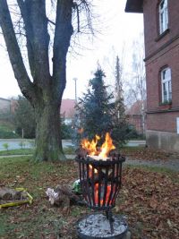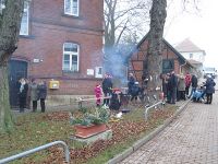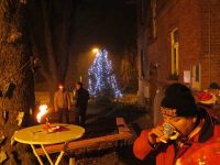 Langsam wurde es dunkler und die Lichter am Baum funkelten. Vor dem Museum saß man in gemütlicher Runde beim Glühwein, der bei frostigen Temperaturen auch notwendig war. Als es zu kalt wurde ging man lieber nach Hause, um sich dort zu wärmen. Das Winterwetter hatte jedoch gehalten und es blieb kalt aber trocken.
