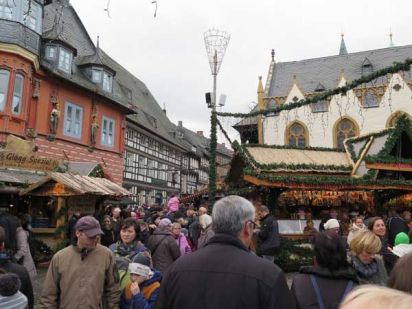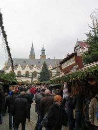 Wegen des Weihnachtsmarktes waren natürlich viele Busse auf dem zentralen Parkplatz abgestellt, so dass für unseren kein Platz mehr war. Unser Fahrer ließ uns aussteigen und fuhr einen Parkplatz weiter außerhalb an, nachdem wir uns für 17.00 Uhr verabredet hatten. Gleich nebenan erhob sich die Kaiserpfalz von Goslar, denn seit dem 11. Jahrhundert begann mit der ersten Reichssynode unter Heinrich II. die für Goslar wichtige Periode als eine zentrale Pfalz des Heiligen Römischen Reiches, allerding noch an anderer Stelle. Die Altstadt zählt zum Weltkulturerbe der UNESCO.
