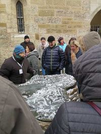 Nach der Besichtigung der St. Jakobskirche, in der wir uns etwas aufgewärmt hatten, traten wir wieder in die Kälte hinaus und folgten der keinesfalls hohen, mittelalterlichen Stadtmauer, die sich über dem Tal am Berghang entlang zog.