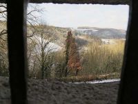 Die Sicht durch die Schieß-und Beobachtungsscharten zeigte, dass die Mauer nicht höher sein musste, da der Hang dahinter ziemlich steil abwärts ins Tal ging.