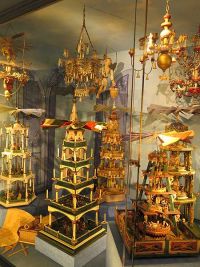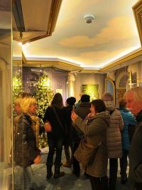 Glitzer und Glimmer an jeder Wand und in jeder Ecke warteten auf uns, Christbaumschmuck aus vergangenen Zeiten gab es ebenso zu bewundern in den Räumen des Museums, wie auch Weihnachtsmänner, Weihnachtsbaumständer, Pyramiden, Glöckchen, Kugeln, Lametta aller Epochen und noch viel mehr. An einem der Bäume konnte man selbst geschriebene Wünsche oder Grüße befestigen und ihn damit schmücken.
